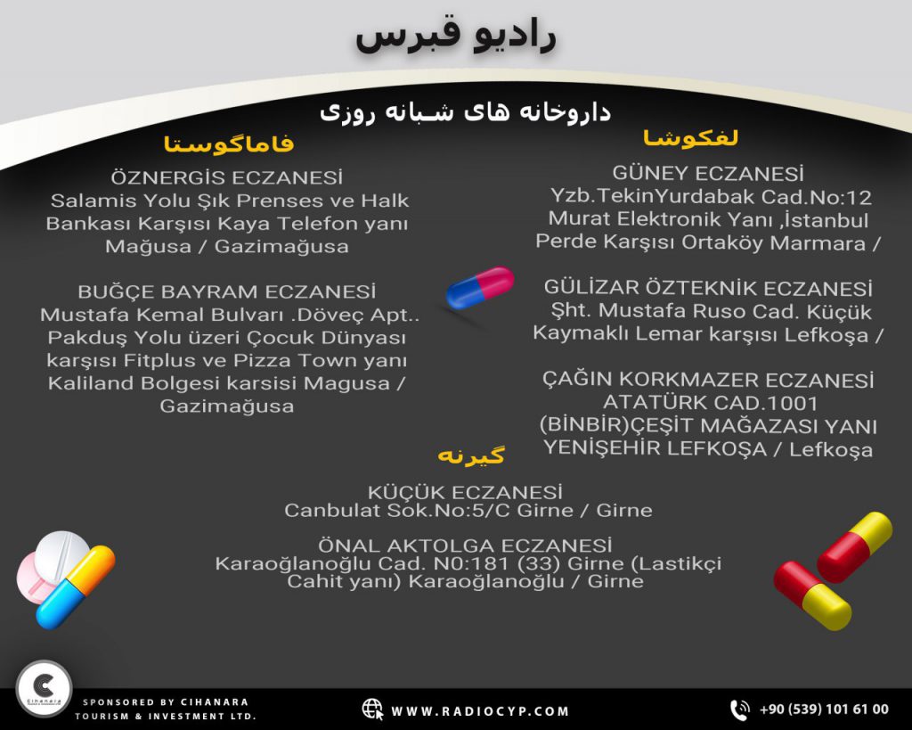 داروخانه های شیفت شبانه امروز ۲۰۲۰/۰۸/۱۸