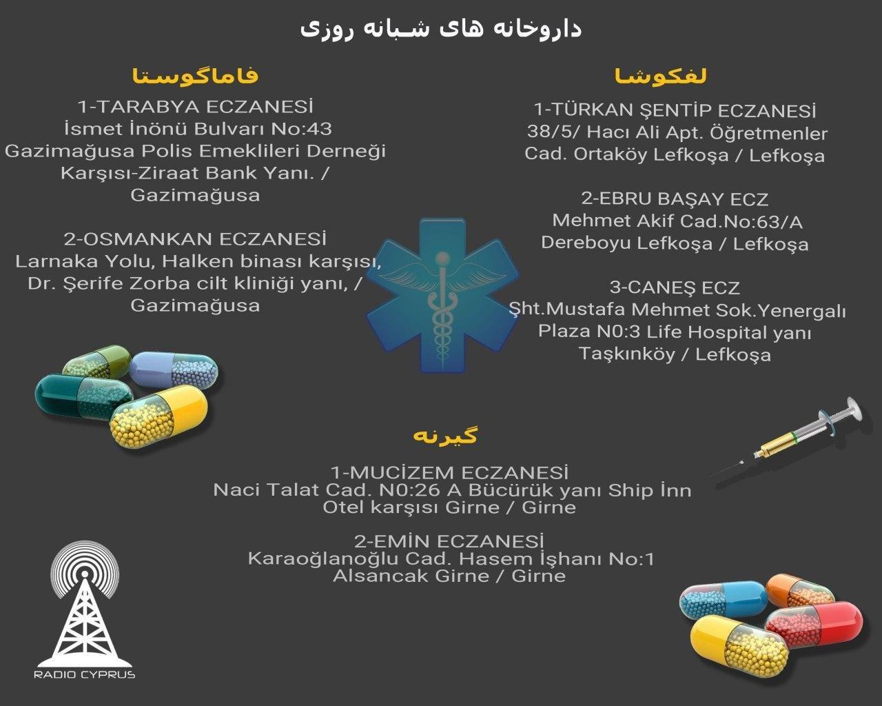 داروخانه های شیفت شبانه امروز ۲۰۲۰/۰۸/۲۵