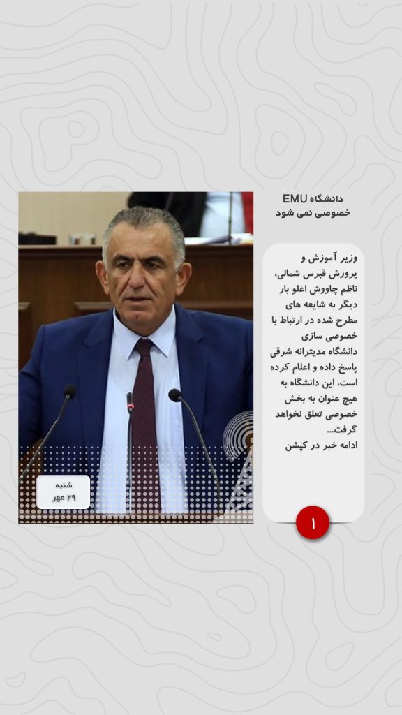 وزیر آموزش و پرورش قبرس شمالی، ناظم چاووش اغلو بار دیگر به شایعه های مطرح شده در ارتباط با خصوصی سازی دانشگاه مدیترانه شرقی پاسخ داده و اعلام کرده است، این دانشگاه به هیچ عنوان به بخش خصوصی تعلق نخواهد گرفت. لازم به ذکر است در جریان رأی گیری روز گذشته دکتر حسن کیلیچ با کسب ۸۸.۵۴ درصد آرا، رأی اعتماد کارکنان دانشگاه مدیترانه شرقی را کسب کرد و به این ترتیب آقای کیلیچ، رئیس جدید دانشگاه مدیترانه شرقی خواهد شد.