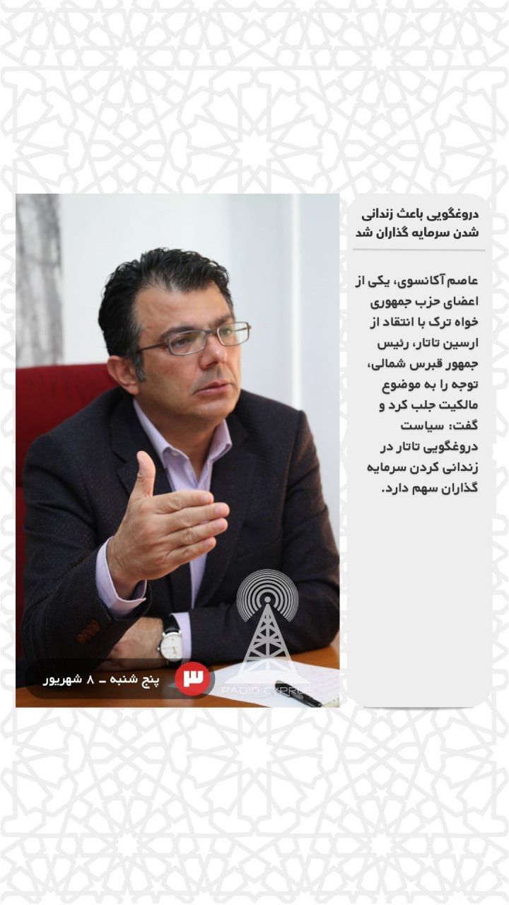عاصم آکانسوی، یکی از اعضای حزب جمهوری خواه ترک با انتقاد از ارسین تاتار، رئیس جمهور قبرس شمالی، توجه را به موضوع مالکیت جلب کرد و گفت: سیاست دروغگویی تاتار در زندانی کردن سرمایه گذاران سهم دارد.