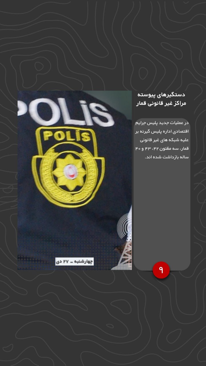 در عملیات جدید پلیس جرایم اقتصادی اداره پلیس گیرنه بر علیه شبکه های غیر قانونی قمار، سه مظنون ۴۲، ۴۳ و ۴۰ ساله بازداشت شده اند.
