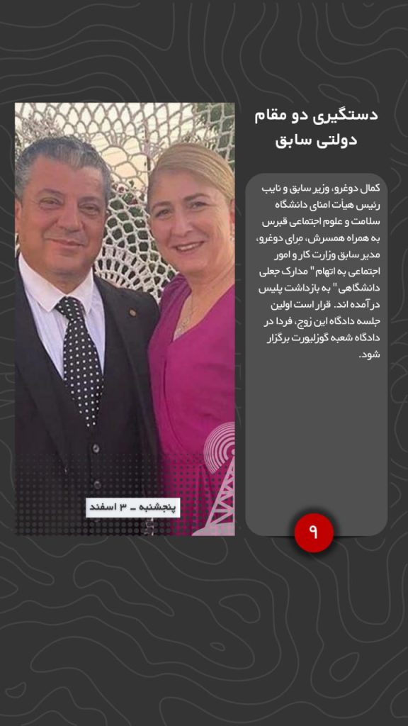 کمال دوغرو، وزیر سابق و نایب رئیس هیأت امنای دانشگاه سلامت و علوم اجتماعی قبرس به همراه همسرش، مِرای دوغرو، مدیر سابق وزارت کار و امور اجتماعی به اتهام ” مدارک جعلی دانشگاهی ” به بازداشت پلیس در آمده اند. قرار است اولین جلسه دادگاه این زوج، فردا در دادگاه شعبه گوزلیورت برگزار شود.