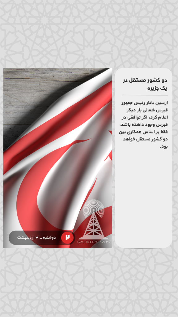ارسین تاتار رئیس جمهور قبرس شمالی بار دیگر اعلام کرد: اگر توافقی در قبرس وجود داشته باشد، فقط بر اساس همکاری بین دو کشور مستقل خواهد بود.