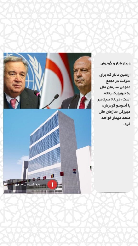 ارسین تاتار که برای شرکت در مجمع عمومی سازمان ملل به نیویورک رفته است، در ۲۸ سپتامبر با آنتونیو گوترش، دبیرکل سازمان ملل متحد دیدار خواهد کرد.