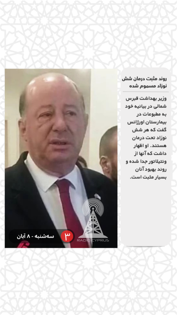 وزیر بهداشت قبرس شمالی در بیانیه خود به مطبوعات در بیمارستان اورژانس گفت که هر شش نوزاد تحت درمان هستند. او اظهار داشت که آنها از ونتیلاتور جدا شده و روند بهبود آنان بسیار مثبت است.