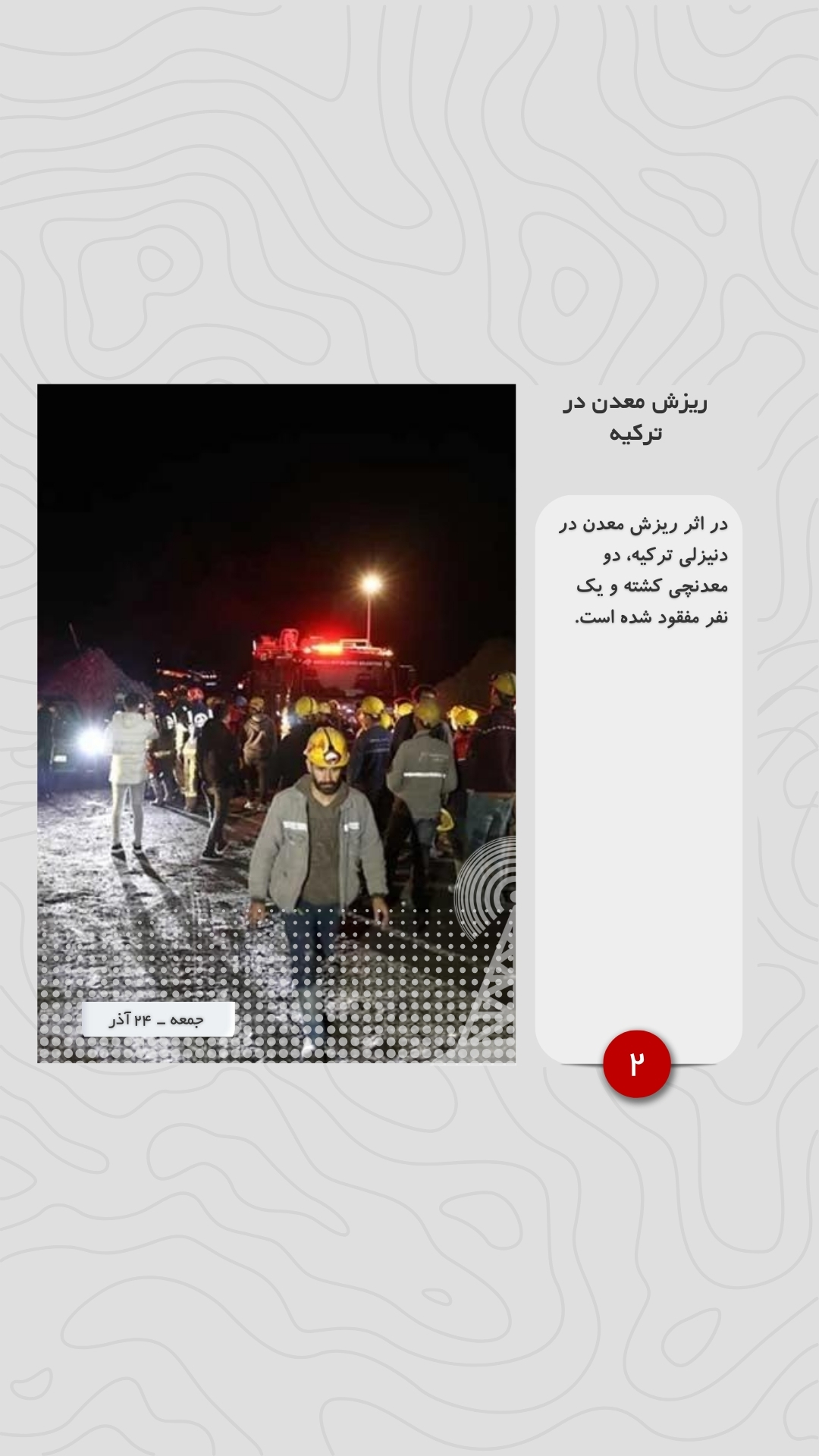 در اثر ریزش معدن در دنیزلی ترکیه، دو معدنچی کشته و یک نفر مفقود شده است.