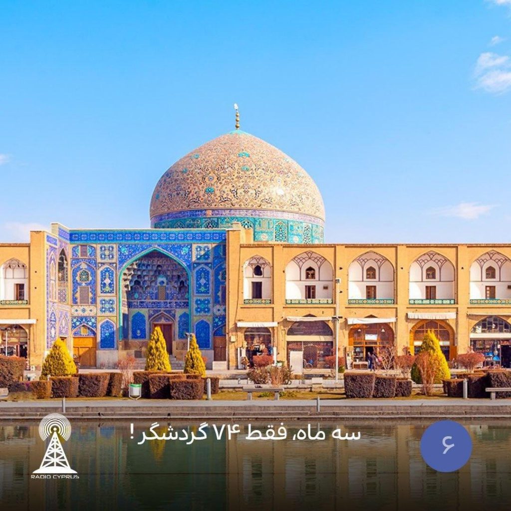 وزیر گردشگری ایران: در ۳ ماه اول امسال ۷۴ گردشگر خارجی به ایران سفر کردند. در سه ماه نخست سال گذشته تعداد گردشگران خارجی دو میلیون و ۳۰۰ هزار نفر بود.