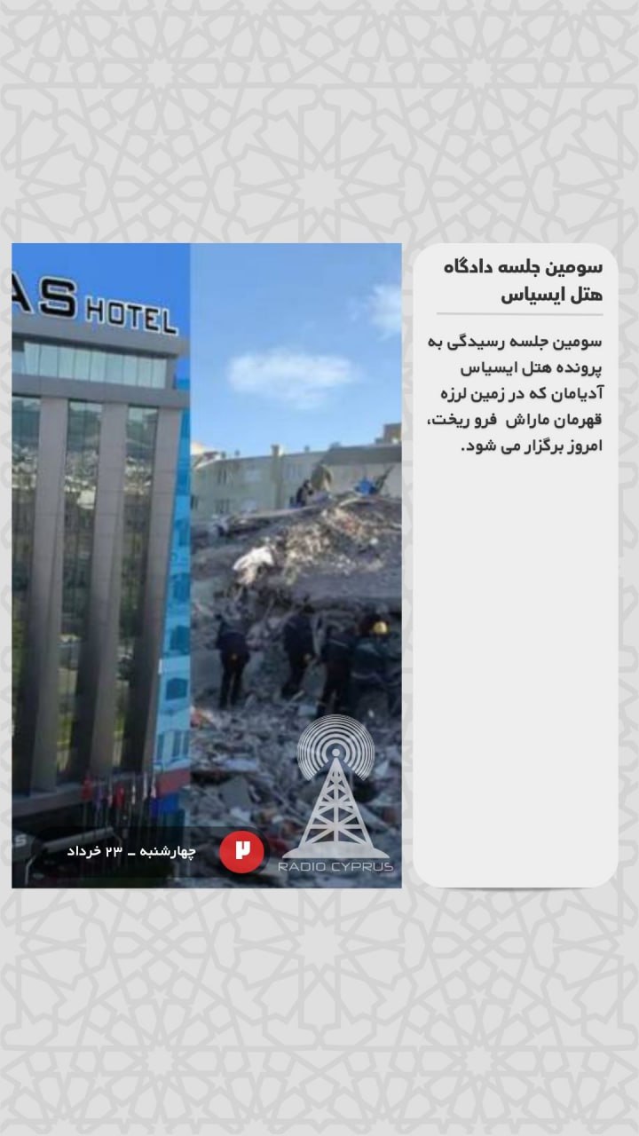 سومین جلسه رسیدگی به پرونده هتل ایسیاس آدیامان که در زمین لرزه قهرمان ماراش فرو ریخت، امروز برگزار می شود.