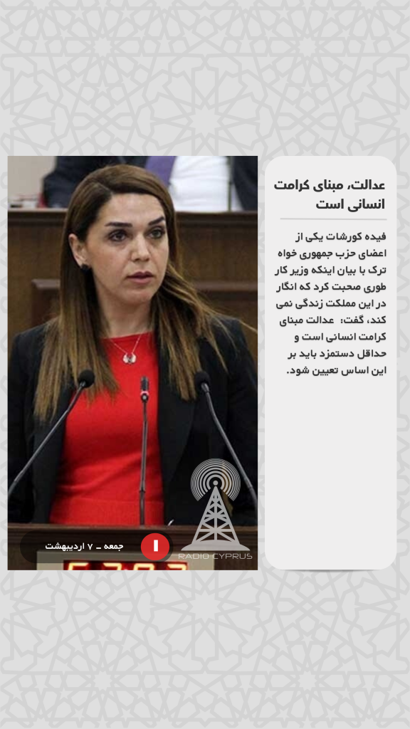 فیده کورشات یکی از اعضای حزب جمهوری خواه ترک با بیان اینکه وزیر کار طوری صحبت کرد که انگار در این مملکت زندگی نمی کند، گفت: عدالت مبنای کرامت انسانی است و حداقل دستمزد باید بر این اساس تعیین شود.