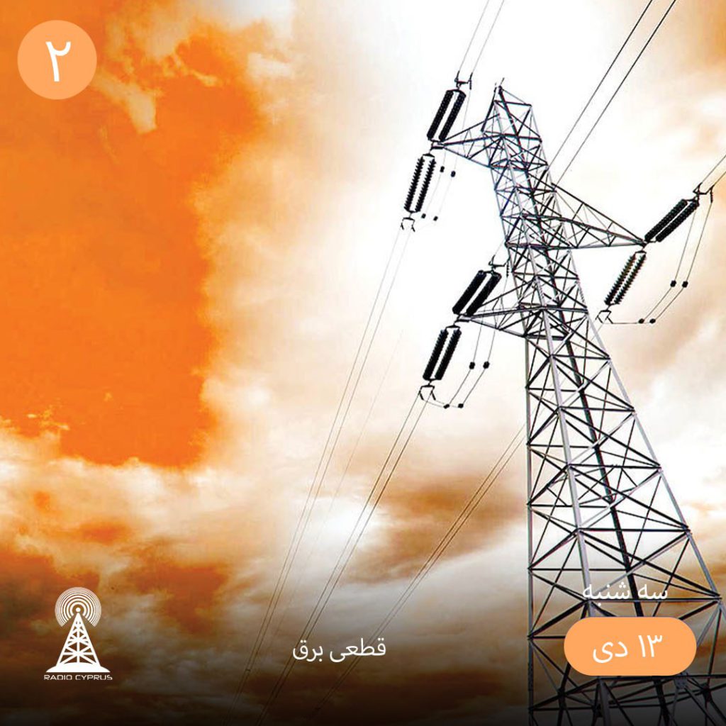 اداره برق قبرس شمالی اعلام کرد که به دلیل کارهای تعمیراتی در شبکه برق رسانی، امروز از ساعت ۹ الی ۱۶ برق در برخی مناطق گیرنه، لفکوشا و دیکمن قطع خواهد بود.