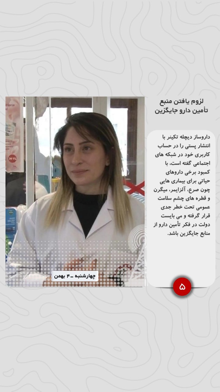 داروساز دیچله تکینر با انتشار پستی را در حساب کاربری خود در شبکه های اجتماعی گفته است، با کمبود برخی داروهای حیاتی برای بیماری هایی چون صرع، آلزایمر، میگرن و قطره های چشم سلامت عمومی تحت خطر جدی قرار گرفته و می بایست دولت در فکر تأمین دارو از منابع جایگزین باشد.