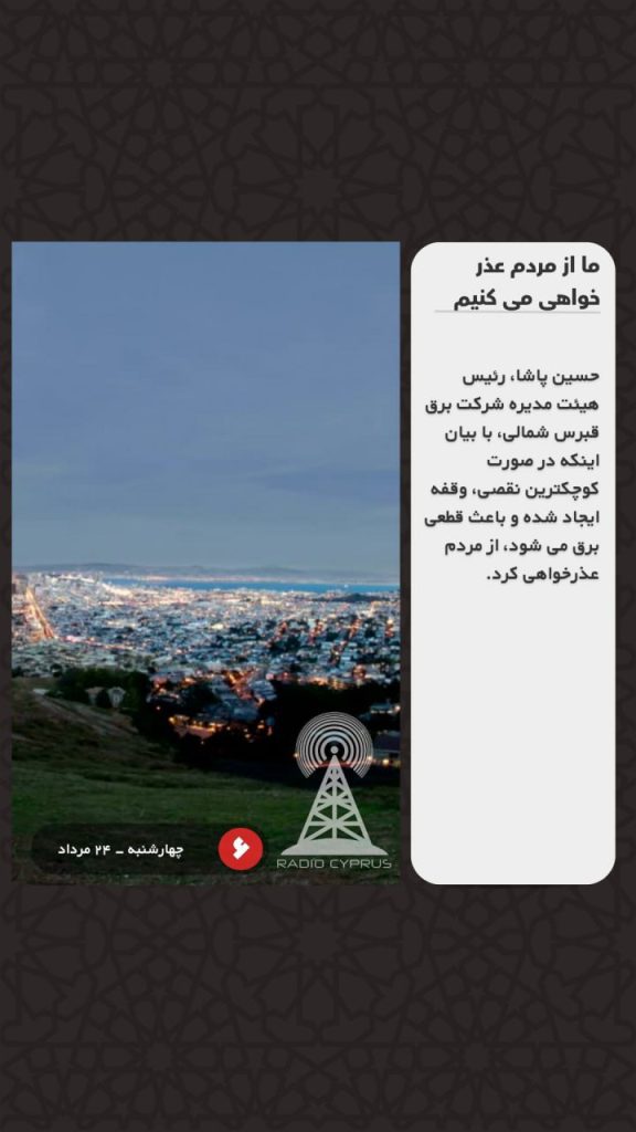 حسین پاشا، رئیس هیئت مدیره شرکت برق قبرس شمالی، با بیان اینکه در صورت کوچکترین نقصی، وقفه ایجاد شده و باعث قطعی برق می شود، از مردم عذرخواهی کرد.