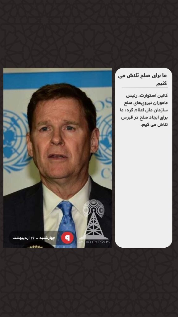 کالین استوارت، رئیس ماموران نیرویهای صلح سازمان ملل اعلام کرد: ما برای ایجاد صلح در قبرس تلاش می کیم.