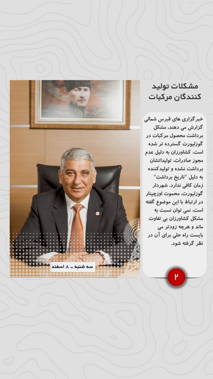خبرگزاری های قبرس شمالی گزارش می دهند، مشکل برداشت محصول مرکبات در گوزلیورت گسترده تر شده است. کشاورزان به دلیل عدم مجوز صادرات، تولیداتشان برداشت نشده و تولیدکننده به دلیل “تاریخ برداشت” زمان کافی ندارد. شهردار گوزلیورت، محموت اوزچینار در ارتباط با این موضوع گفته است، نمی توان نسبت به مشکل کشاورزان بی تفاوت ماند و هرچه زودتر می بایست راه حلی برای آن در نظر گرفته شود.