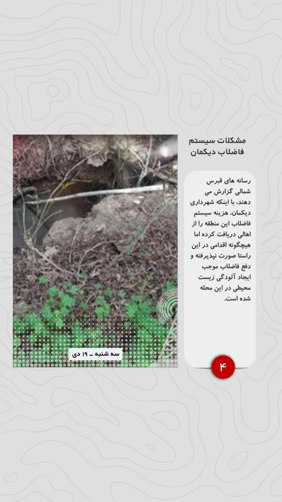 رسانه های قبرس شمالی گزارش می دهند، با اینکه شهرداری دیکمان، هزینه سیستم فاضلاب این منطقه را از اهالی دریافت کرده اما هیچگونه اقدامی در این راستا صورت نپذیرفته و دفع فاضلاب موجب ایجاد آلودگی زیست محیطی در این محله شده است.