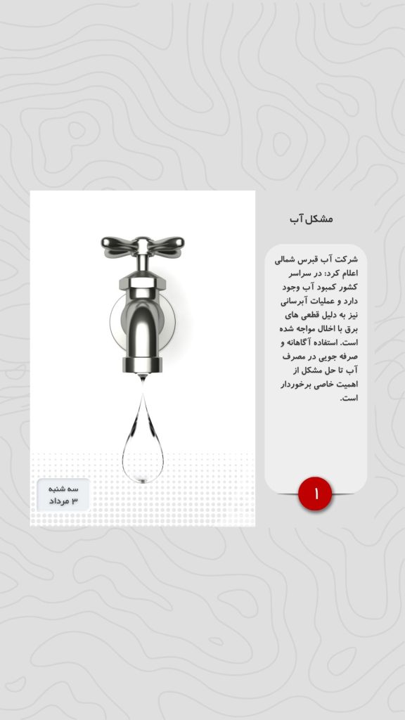 شرکت آب قبرس شمالی اعلام کرد: در سراسر کشور کمبود آب وجود دارد و عملیات آبرسانی نیز به دلیل قطعی های برق با اخلال مواجه شده است. استفاده آگاهانه و صرفه جویی در مصرف آب تا حل مشکل از اهمیت خاصی برخوردار است.