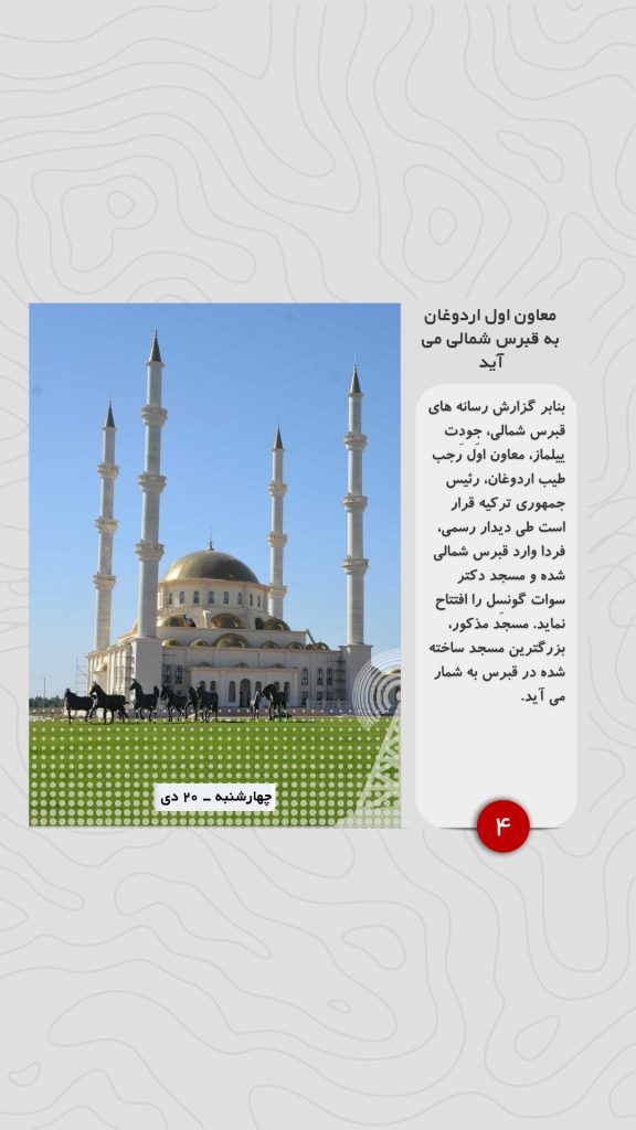 بنابر گزارش رسانه های قبرس شمالی، جِودِت ییلماز، معاون اول رجب طیب اردوغان، رئیس جمهوری ترکیه قرار است طی دیدار رسمی، فردا وارد قبرس شمالی شده و مسجد دکتر سوات گونسِل را افتتاح نماید. مسجد مذکور، بزرگترین مسجد ساخته شده در قبرس به شمار می آید.