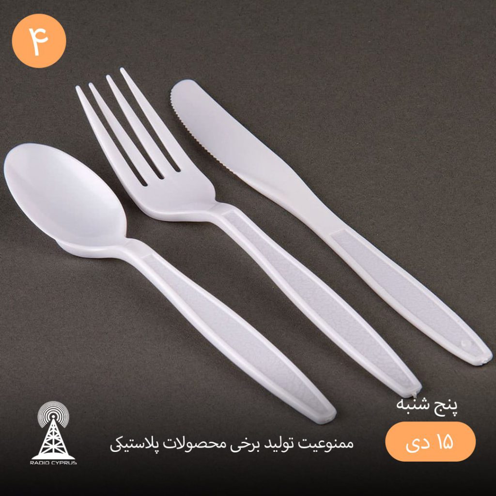 فکری عطااوغلو وزیر گردشگری و محیط زیست قبرس شمالی اعلام کرد: به دنبال ممنوعیت تولید و استفاده از کیسه های پلاستیکی دسته دار از ماه ژوئن، تصمیم داریم در اولین جلسه شورای وزیران تولید برخی از محصولات پلاستیکی یکبار مصرف مانند چنگال، چاقو و نی را نیز ممنوع اعلام کنیم.