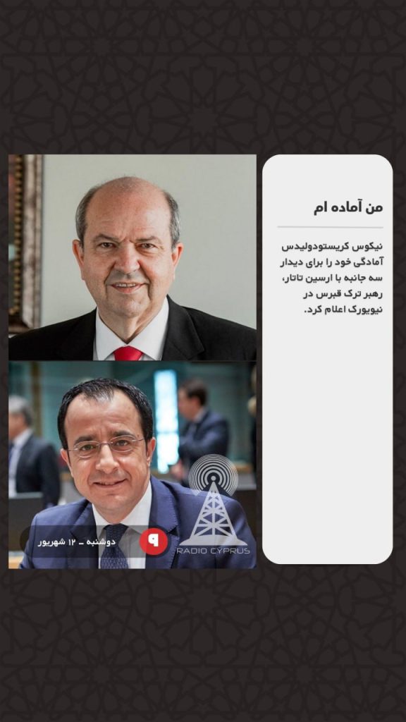 نیکوس کریستودولیدس آمادگی خود را برای دیدار سه جانبه با ارسین تاتار، رهبر ترک قبرس در نیویورک اعلام کرد.