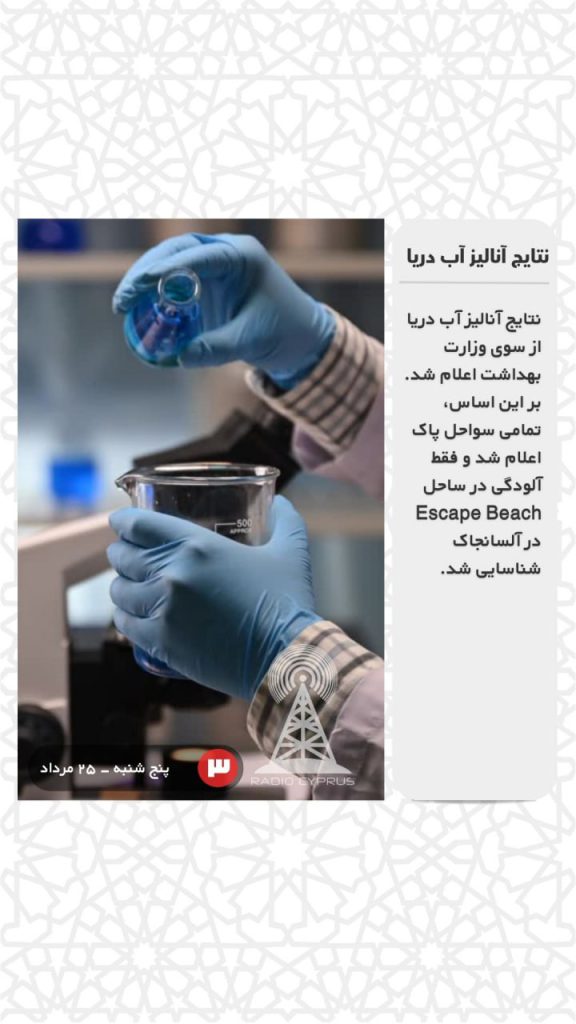 نتایج آنالیز آب دریا از سوی وزارت بهداشت اعلام شد. بر این اساس، تمامی سواحل پاک اعلام شد و فقط آلودگی در ساحل Escape Beach در آلسانجاک شناسایی شد.