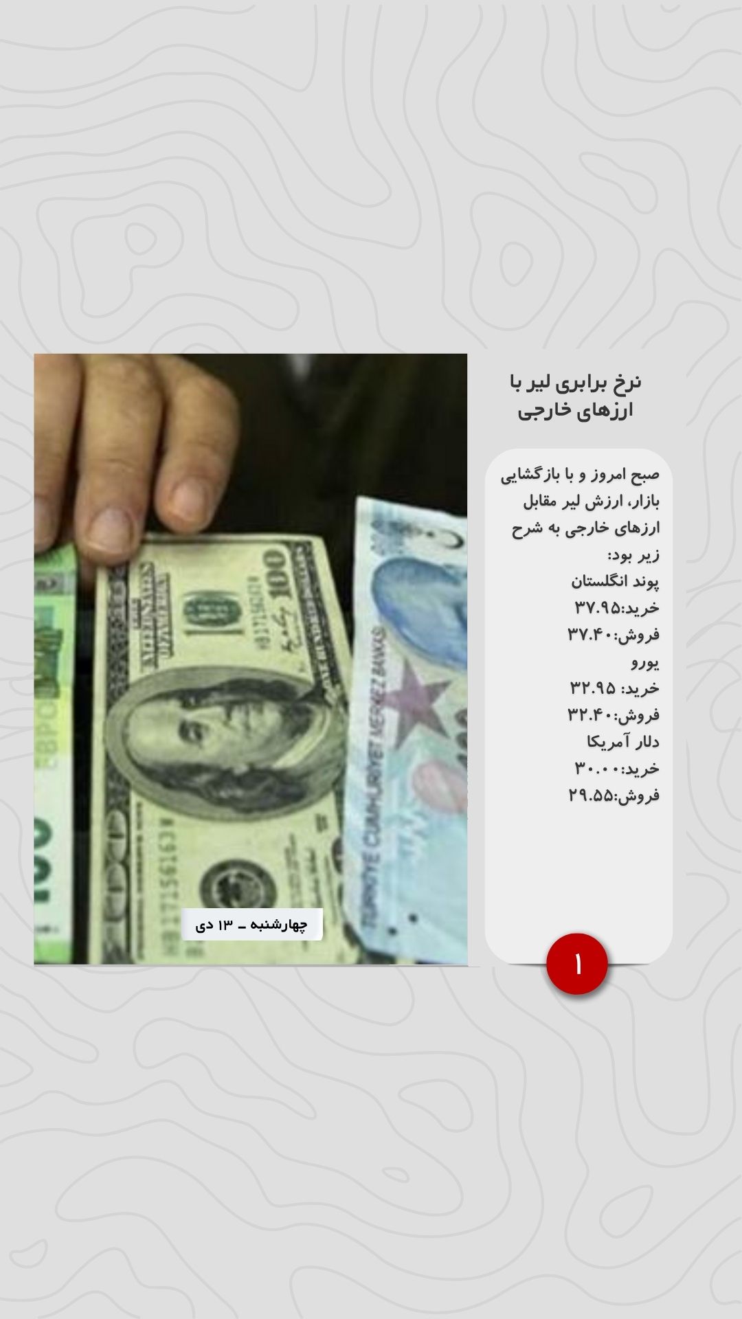 صبح امروز و با بازگشایی بازار، ارزش لیر مقابل ارزهای خارجی به شرح زیر بود: