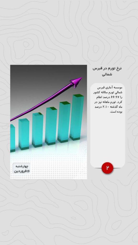 موسسه آماری قبرس شمالی تورم سالانه کشور را ۶۶.۹۷ درصد اعلام کرد. تورم ماهانه نیز در ماه گذشته ۲.۱۰ درصد بوده است.