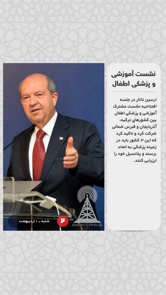 ارسین تاتار در جلسه افتتاحیه نشست مشترک آموزشی و پزشکی اطفال بین کشورهای ترکیه، آذربایجان و قبرس شمالی شرکت کرد و تاکید کرد که این ۳ کشور باید در زمینه پزشکی به اتحاد برسند و پتانسیل خود را ارزیابی کنند.
