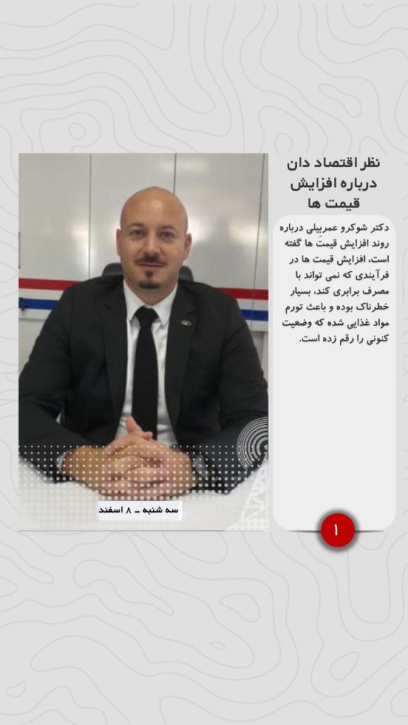 دکتر شوکرو عمربِیلی درباره روند افزایش قیمت ها گفته است، افزایش قیمت ها در فرآیندی که نمی تواند با مصرف برابری کند، بسیار خطرناک بوده و باعث تورم مواد غذایی شده که وضعیت کنونی را رقم زده است.