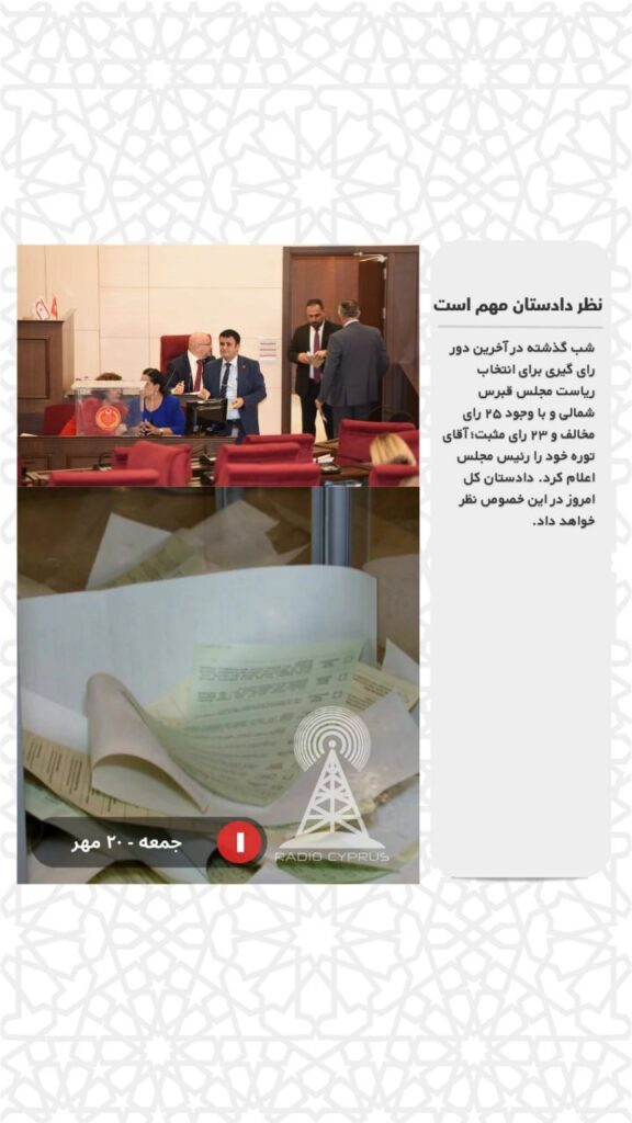 شب گذشته در آخرین دور رای گیری برای انتخاب ریاست مجلس قبرس شمالی و با وجود ۲۵ رای مخالف و ۲۳ رای مثبت؛ آقای توره خود را رئیس مجلس اعلام کرد. دادستان کل امروز در این خصوص نظر خواهد داد.