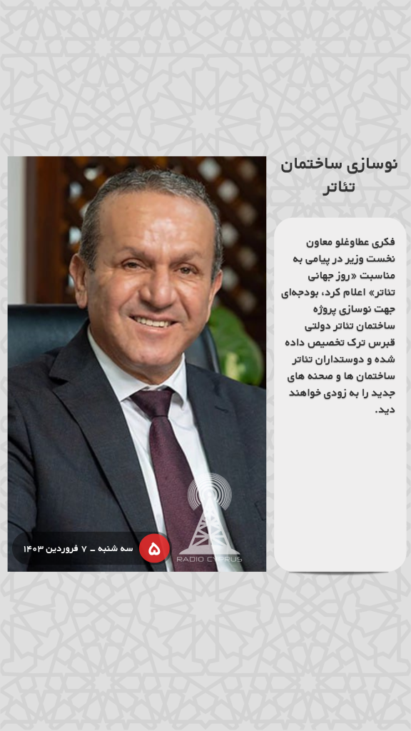 فکری عطاوغلو معاون نخست وزیر در پیامی به مناسبت «روز جهانی تئاتر» اعلام کرد، بودجهای جهت نوسازی پروژه ساختمان تئاتر دولتی قبرس ترک تخصیص داده شده و دوستداران تئاتر ساختمان ها و صحنه های جدید را به زودی خواهند دید.