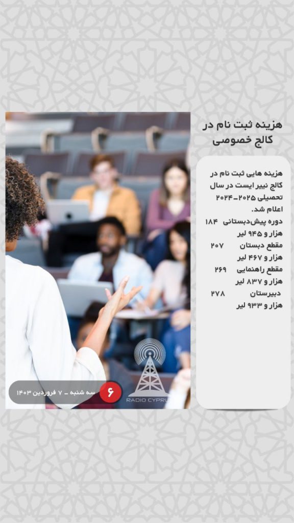 هزینه هایی ثبت نام در کالج نییر ایست در سال تحصیلی ۲۰۲۵-۲۰۲۴ اعلام شد.