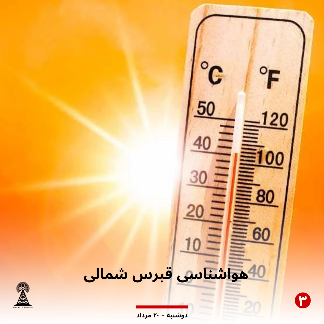 اداره هواشناسی قبرس شمالی اعلام کرد که آسمان امروز در سراسر کشور صاف خواهد بود. پیش‌بینی می‌شود دما در مناطق داخلی حدود ۴۱ تا ۴۴ درجه سانتیگراد و در امتداد ساحل ۳۶ تا ۳۹ درجه سانتیگراد باشد.