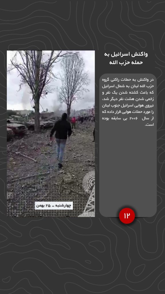 در واکنش به حملات راکتی گروه حزب الله لبنان به شمال اسرائیل که باعث کشته شدن یک نفر و زخمی شدن هشت نفر دیگر شد، نیروی هوایی اسرائیل جنوب لبنان را مورد حملات هوایی قرار داده که از سال ۲۰۰۶ بی سابقه بوده است.