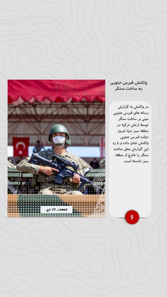 در واکنش به گزارش رسانه های قبرس جنوبی مبنی بر ساخت سنگر توسط ارتش ترکیه در منطقه سبز دِنیا، امروز دولت قبرس جنوبی واکنش نشان داده و با رد این گزارش محل ساخت سنگر را خارج از منطقه سبز دانسته است.