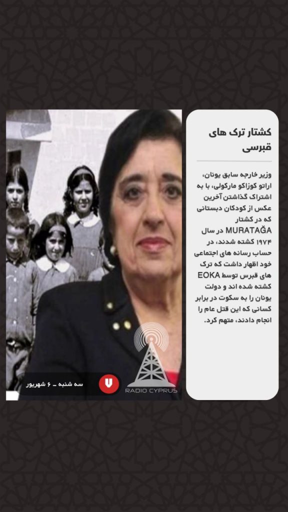 وزیر خارجه سابق یونان، اراتو کوزاکو مارکولی، با به اشتراک گذاشتن آخرین عکس از کودکان دبستانی که در کشتار MURATAĞA در سال ۱۹۷۴ کشته شدند، در حساب رسانه های اجتماعی خود اظهار داشت که ترک های قبرس توسط EOKA کشته شده اند و دولت یونان را به سکوت در برابر کسانی که این قتل عام را انجام دادند، متهم کرد.