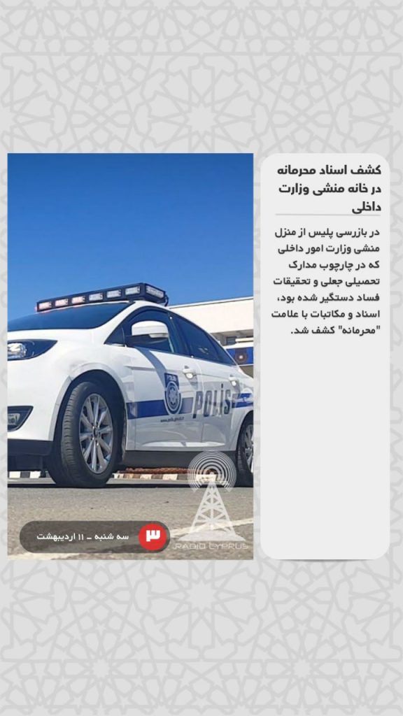 در بازرسی پلیس از منزل منشی وزارت امور داخلی که در چارچوب مدارک تحصیلی جعلی و تحقیقات فساد دستگیر شده بود، اسناد و مکاتبات با علامت “محرمانه” کشف شد.