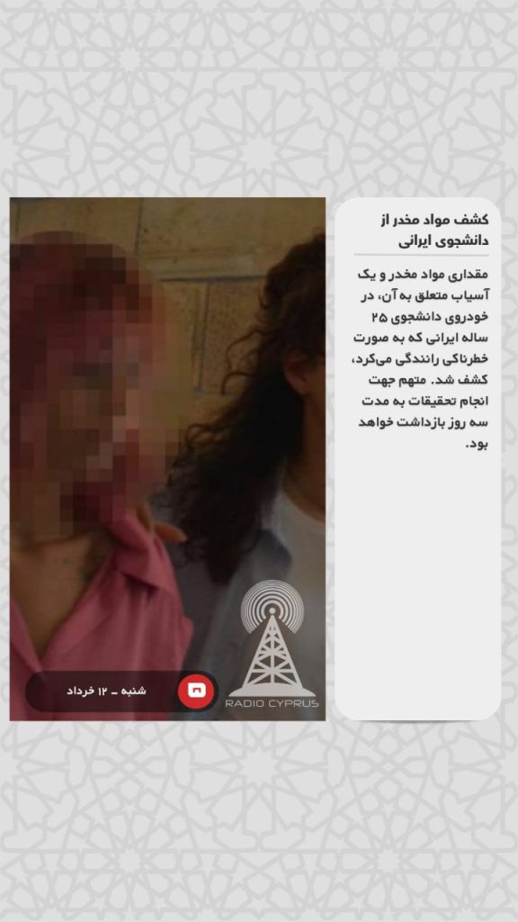 مقداری مواد مخدر و یک آسیاب متعلق به آن، در خودروی دانشجوی ۲۵ ساله ایرانی که به صورت خطرناکی رانندگی میکرد، کشف شد. متهم جهت انجام تحقیقات به مدت سه روز بازداشت خواهد بود.
