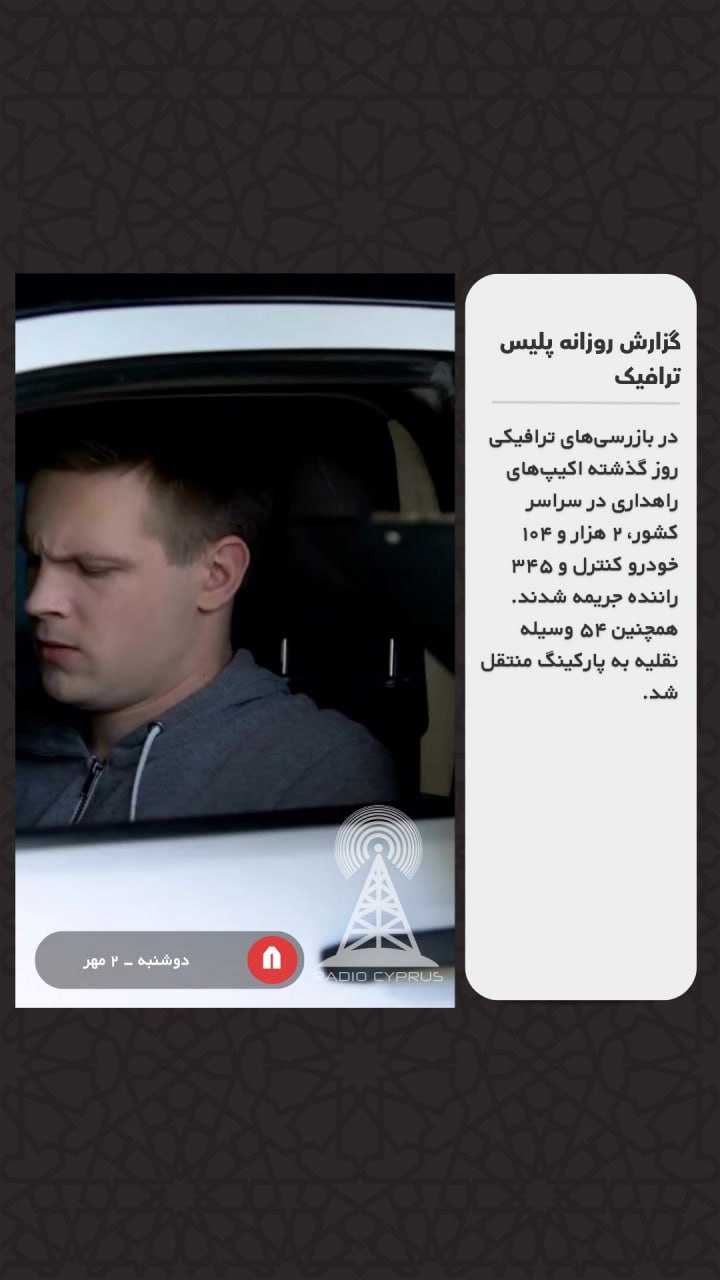در بازرسیهای ترافیکی روز گذشته اکیپهای راهداری در سراسر کشور، ۲ هزار و ۱۰۴ خودرو کنترل و ۳۴۵ راننده جریمه شدند. همچنین ۵۴ وسیله نقلیه به پارکینگ منتقل شد.
