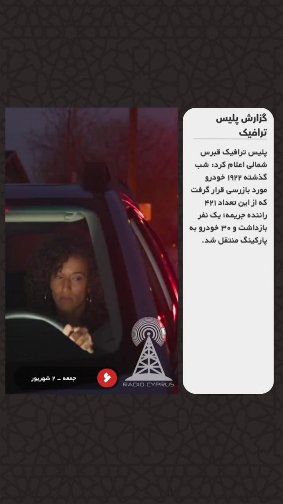 پلیس ترافیک قبرس شمالی اعلام کرد: شب گذشته ۱۹۲۲ خودرو مورد بازرسی قرار گرفت که از این تعداد ۴۲۱ راننده جریمه؛ یک نفر بازداشت و ۳۰ خودرو به پارکینگ منتقل شد.