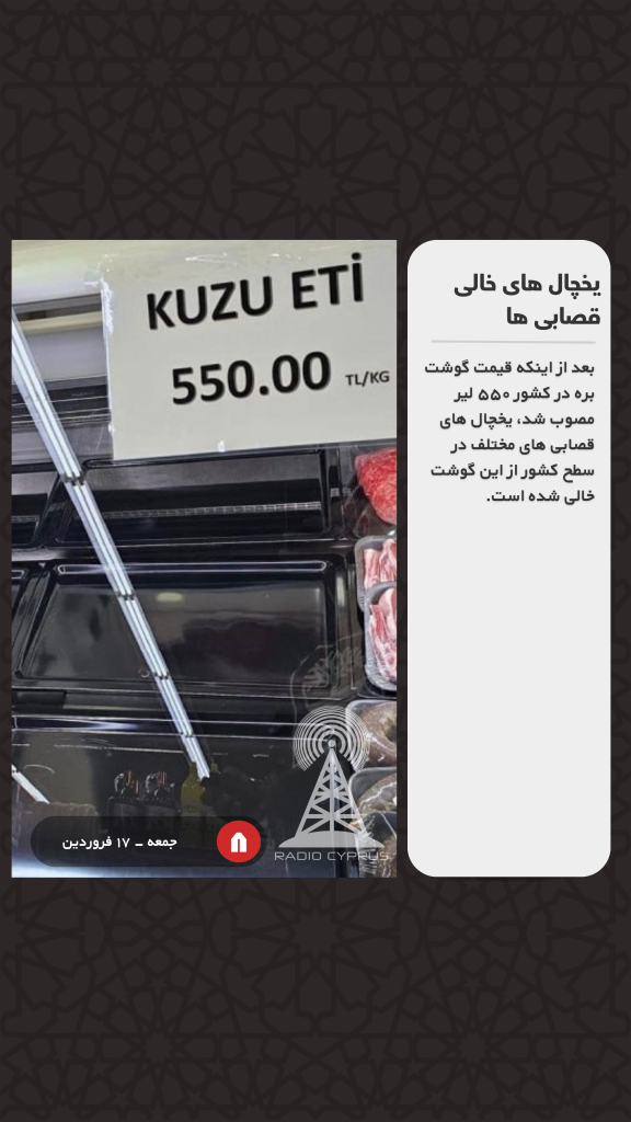بعد از اینکه قیمت گوشت بره در کشور ۵۵۰ لیر مصوب شد، یخچال های قصابی های مختلف در سطح کشور از این گوشت خالی شده است.