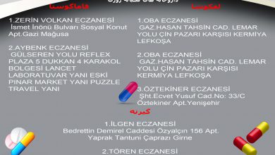 لفکوشا: OBA ECZANESİ GAZ.HASAN TAHSİN CAD. LEMAR YOLU ÇİN PAZARI KARŞISI KERMİYA LEFKOŞA ۰۳۹۲۲۲۳۷۱۰۱ *** APAYDIN ECZANESİ ۲.Selim Cad.Arabacıoğlu Apt.Köşlüçiftlik…