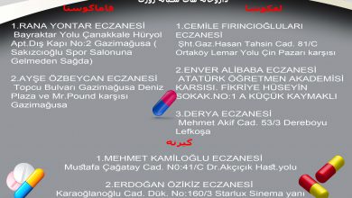 لفکوشا: CEMİLE FIRINCIOĞLULARI ECZANESİ Şht.Gaz.Hasan Tahsin Cad. 81/C Ortaköy Lemar Yolu Çin Pazarı karşısı Lefkoşa ۰۳۹۲۲۲۳۸۲۲۲ *** ENVER ALİBABA ECZANESİ ATATÜRK…