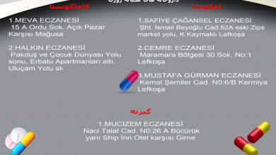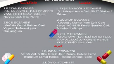 لفکوشا: SAFİYE ÇAĞANSEL ECZANESİ Şht. İsmail Beyoğlu Cad.52A eski Zips market yolu, K.Kaymaklı Lefkoşa ۰۳۹۲۲۲۷۷۶۷۶ *** CEMRE ECZANESİ Maramara Bölgesi…