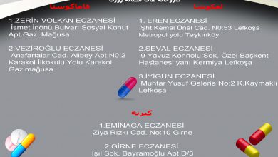 لفکوشا: EREN ECZANESİ Şht.Kemal Ünal Cad. N0:53 Lefkoşa Metropol yolu Taşkınköy ۰۳۹۲ ۲۲۵ ۲۴ ۷۴ *** SEVAL ECZANESİ ۹ Yavuz…