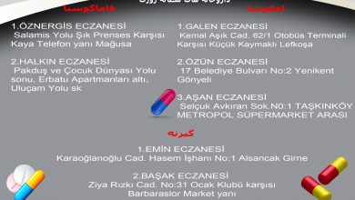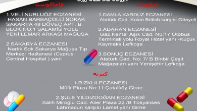 لفکوشا: DAMLA KARDÜZ ECZANESİ Atatürk Cad. Kolan British karşısı Gönyeli ۰۳۹۲۲۲۳۴۵۶۵ ۰۵۳۳۸۸۴۰۴۱۵ *** ADAHAN ECZANESİ Gaz.Kemal Aşık Cad. N0:17 Otobüs…