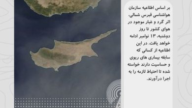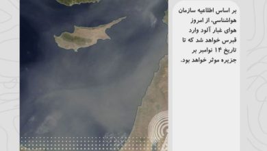 بر اساس اطلاعیه سازمان هواشناسی، از امروز هوای غبار آلود وارد قبرس خواهد شد که تا تاریخ ۱۴ نوامبر بر…