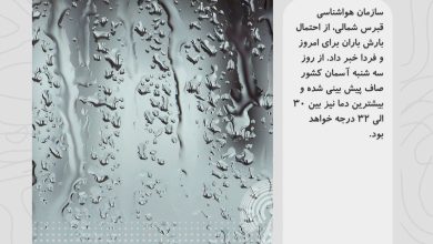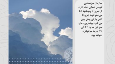سازمان هواشناسی قبرس شمالی اعلام کرد: از امروز تا پنجشنبه ۲۵ می، هوا نیمه ابری تا کمی بارانی پیش بینی…
