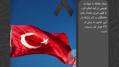 ستاد مقابله با حوادث طبیعی ترکیه کشته شدگان زمین لرزه در این کشور را تا صبح امروز ۲۹ هزار و…