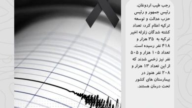 رجب طیب اردوغان، رئیس جمهور و رئیس حزب عدالت و توسعه ترکیه اعلام کرد: تعداد کشته شدگان زلزله اخیر ترکیه…
