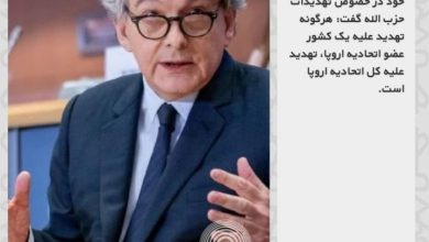 تیری برتون، کمیسر داخلی اتحادیه اروپا در بیانیه خود در خصوص تهدیدات حزب الله گفت: هرگونه تهدید علیه یک کشور…